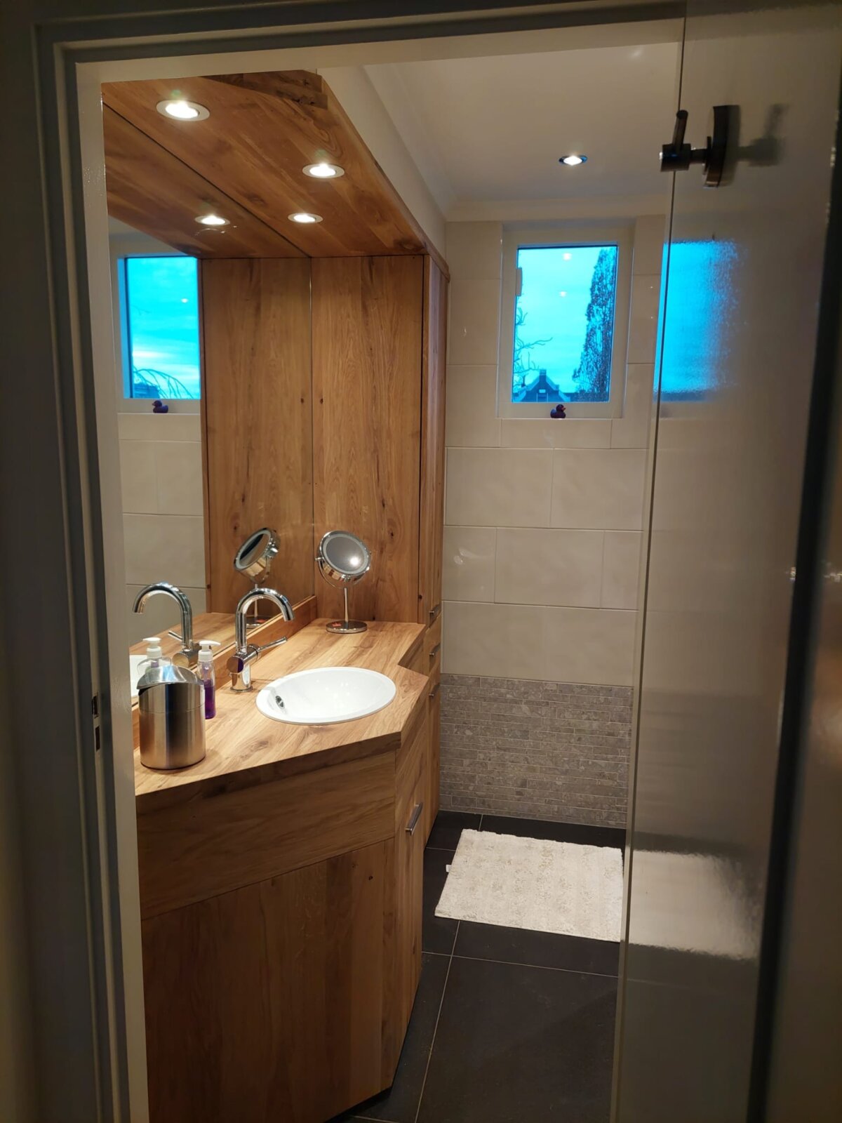 Badkamers 28 januari 2025 Projecten We hebben inmiddels een aantal badkamermeubels op maat mogen maken en plaatsen. Allen van massief eikenhout met uiteraard een goede behandeling tegen vocht! Ook leuk met bijpassende wandplanken en accessoires als een toiletrolhouder of bankje. badkamereikbadkamermeubeleikbadkamermeubelsopmaatbanfieldwoodworks Delen Twitter Facebook Pinterest LinkedIn E-mail