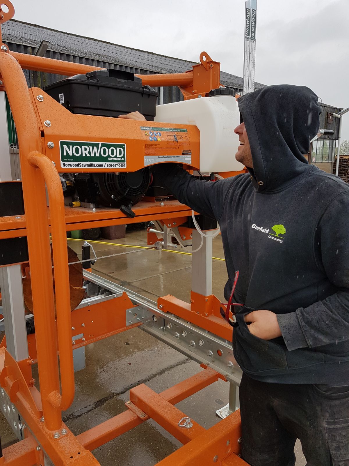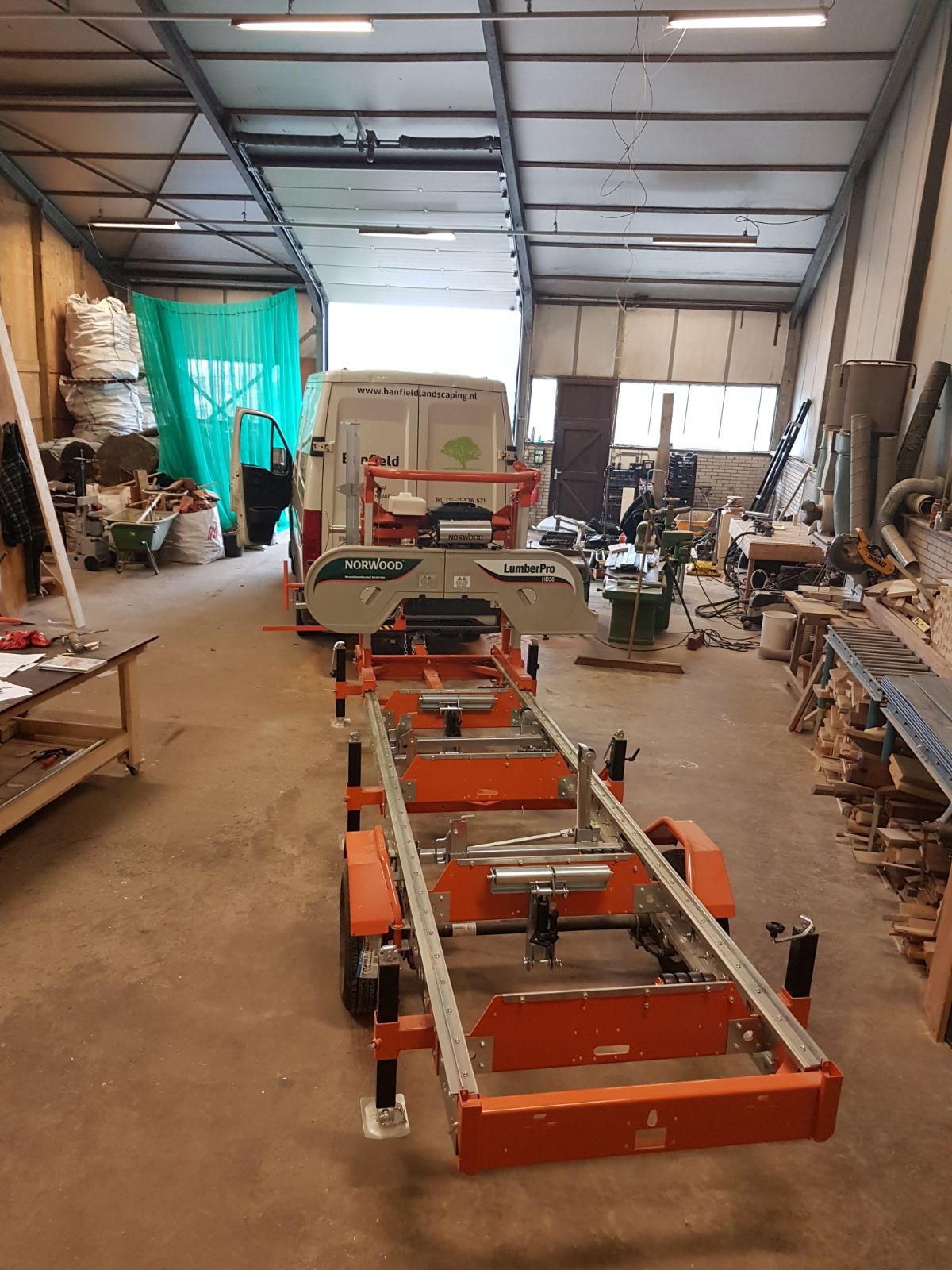 In the beginning of 2018 we bought our Norwood mobile sawmill from Canada. It came in as a big building package, but because we had to build the whole machine ourselves, we know exactly how it’s built and how it works. It took quit a bit of hours, but we were very proud of the result! From now on, we could mill treetrunks into planks and beams. This can be done at our workplace or onsite.