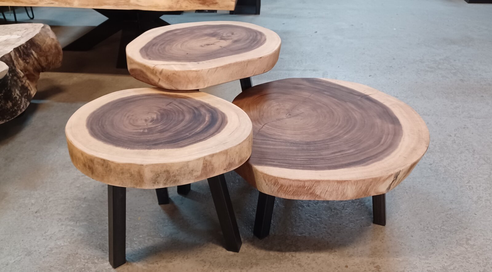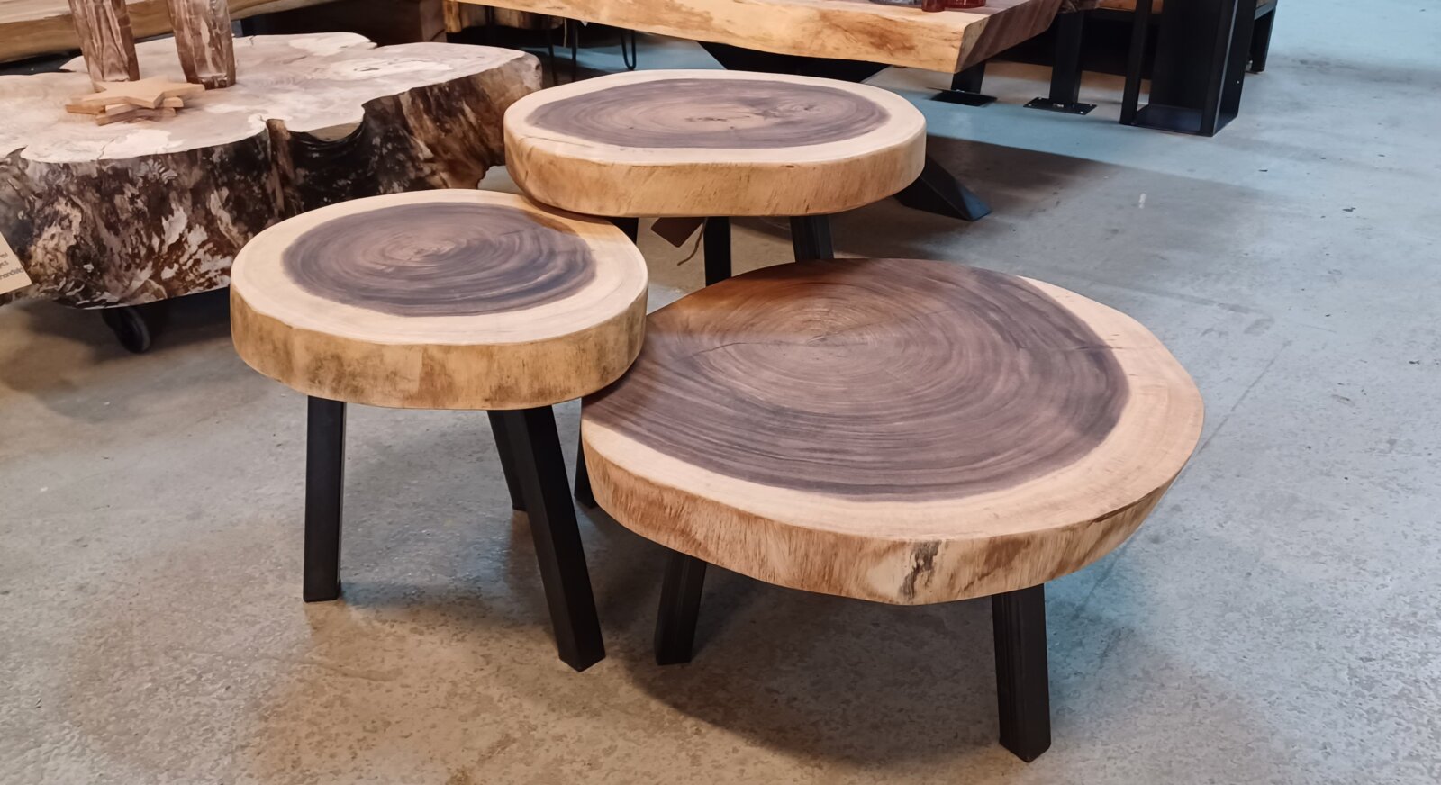Set of 3 Suar coffee tables€ 650,00 Set of 3 Suar treetrunk coffee tables 31, 39 and 46cm high. The wood is treated with transparent hardwax. The legs are coated steel in size 3,5×3,5cm. Mentioned price is incl. VAT and at picking up in Boskoop. Set of 3 Suar coffee tables quantity Add to basket Category: Furniture Tags: banfield, coffeetables, furnituretosize, setof3coffeetables, Suarcoffeetables, woodworks Related products Add to basket Children’s coat rack € 250,00 Read more Industrial aquarium furniture Add to basket Outdoor kitchen € 850,00 Add to basket Plant table € 119,00