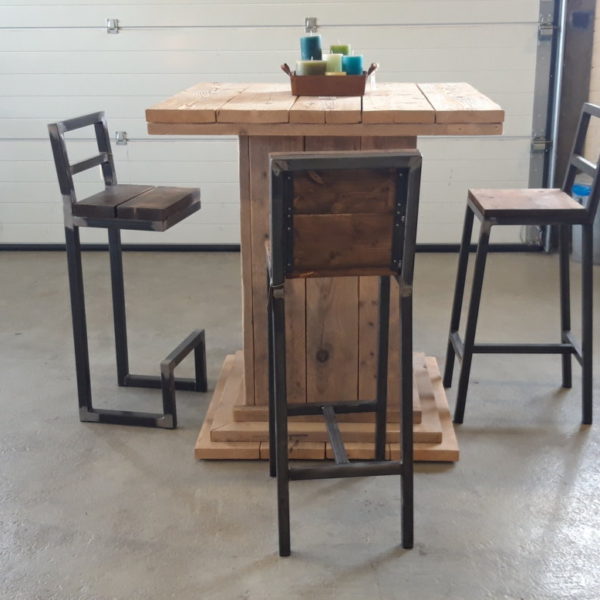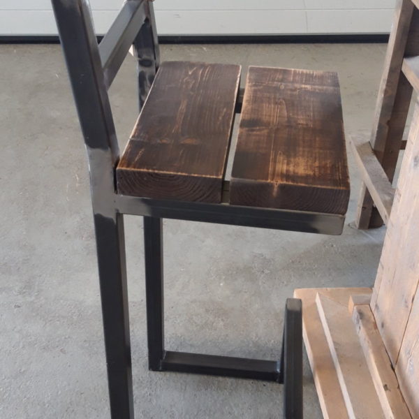 Diverse modellen stalen barkrukken met steigerhout, prijzen op aanvraag.