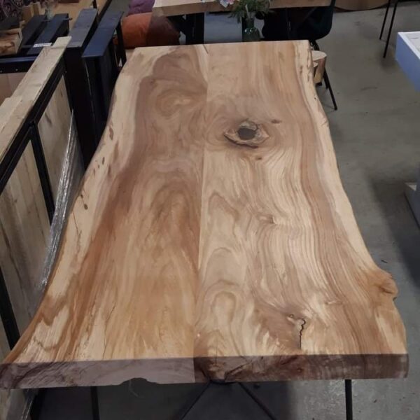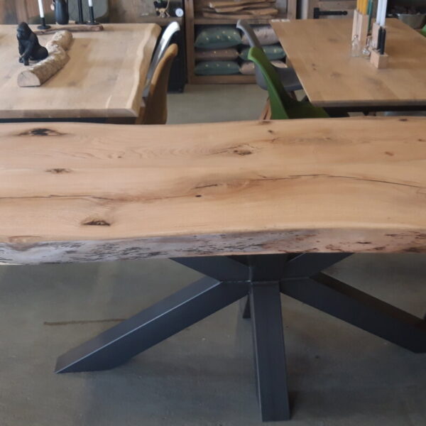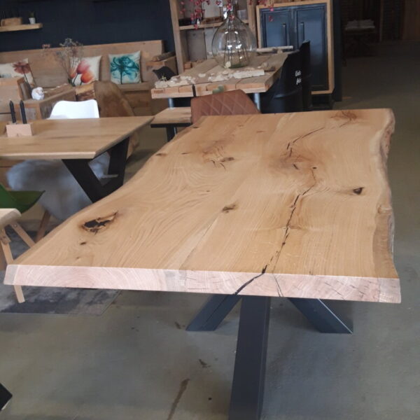 Eiken tafelbladen van ons ‘eigen’ hout van bomen uit de omgeving. Altijd een super uniek blad op maat gemaakt, met eventueel een behandeling naar keuze. Kom gerust eens langs om ons hout te bekijken en je wensen te bespreken!