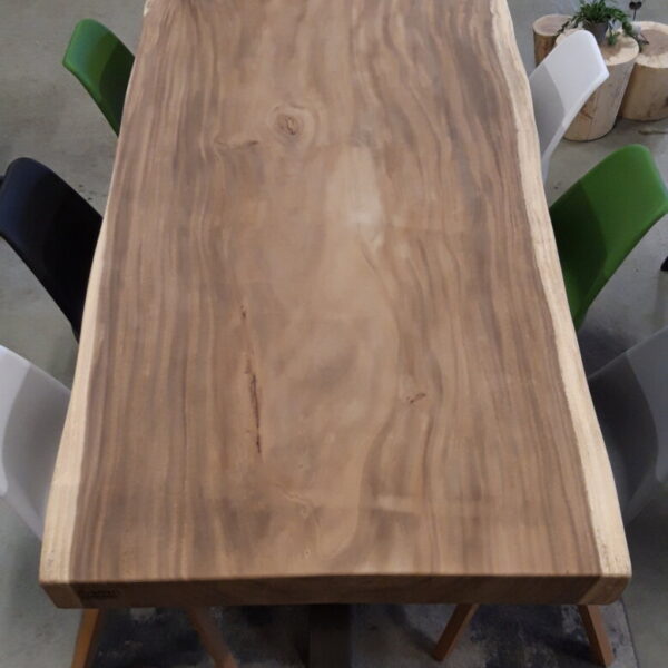 Diverse tafelbladen van Suar hout 7-8cm dik. Netjes opgeschuurd en onbehandeld. Voor de actuele prijzen kunt u contact met ons opnemen. Uiteraard kunnen wij een onderstel naar wens leveren, alsmede het blad naar keuze behandelen tegen meerprijs.